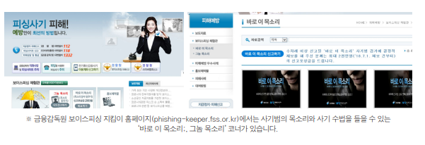 금융사기의 피해를 입지 않기 위하여 가장 중요하게 해야 할 것은 예방입니다. 사기범은 매우 계획적이고 조직적이며 전문적입니다. 사기의 수법은 계속 진화합 니다. 따라서 금융사기의 수법을 꾸준히 파악하고 조금이라도 의심스러우면 반 드시 꼼꼼하게 확인합니다. 금융감독원의 「보이스피싱 지킴이 홈페이지(phishing-keeper.fss.or.kr)」를 방문하며 다양한 정보와 보이스피싱 피해 예방에 대한 체험을 할 수 있습니다.
